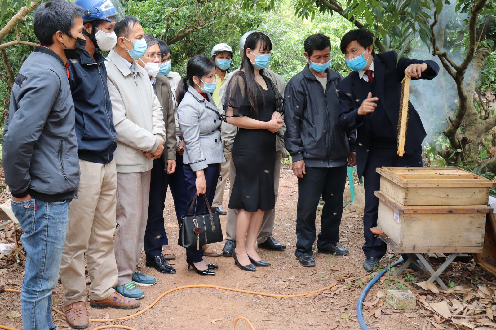 Sau khi được tập huấn kỹ thuật lần 1, nhận đàn ong giống, thức ăn bổ sung và các vật tư nuôi ong, trong tháng 6, tháng 7, cơ sở đã chủ động chăm sóc, nuôi dưỡng, củng cố và tăng thế đàn. Nhờ áp dụng đúng kỹ thuật, cơ sở đã tiến hành lên kế lửng và thu hoạch được mật ong từ 80% số đàn ong của mô hình. Tháng 10, tháng 11 cơ sở tiếp tục khai thác mật thác mật hoa rừng. Tính đến thời điểm hiện tại, cơ sở đã thu được sản phẩm mật ong từ tầng kế lửng từ hầu hết các đàn ong trong mô hình của dự án.