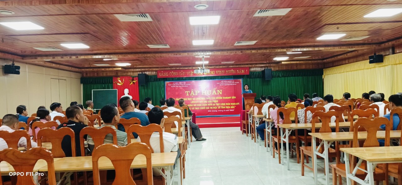 Tại buổi tập huấn, các học viên đã được hướng dẫn quy trình kỹ thuật chăn nuôi gà thịt theo tiêu chuẩn VietGAHP như: các vấn đề̀ thường gặp trong chăn nuôi gà thịt ở nông hộ, nguyên nhân và một số giải pháp kỹ thuật; an toàn sinh học trong chăn nuôi gà thịt, sử dụng vắc-xin phòng bệnh cho gà thịt, sử dụng chế phẩm vi sinh và xử lý chất thải trong chăn nuôi, kiểm soát động vật và côn trùng gây hại; một số lưu ý sử dụng kháng sinh cho gà thịt và quản lý nhận sự, ghi chép lưu trữ hồ sơ, truy nguyên nguồn gốc và thu hồi sản phẩm.