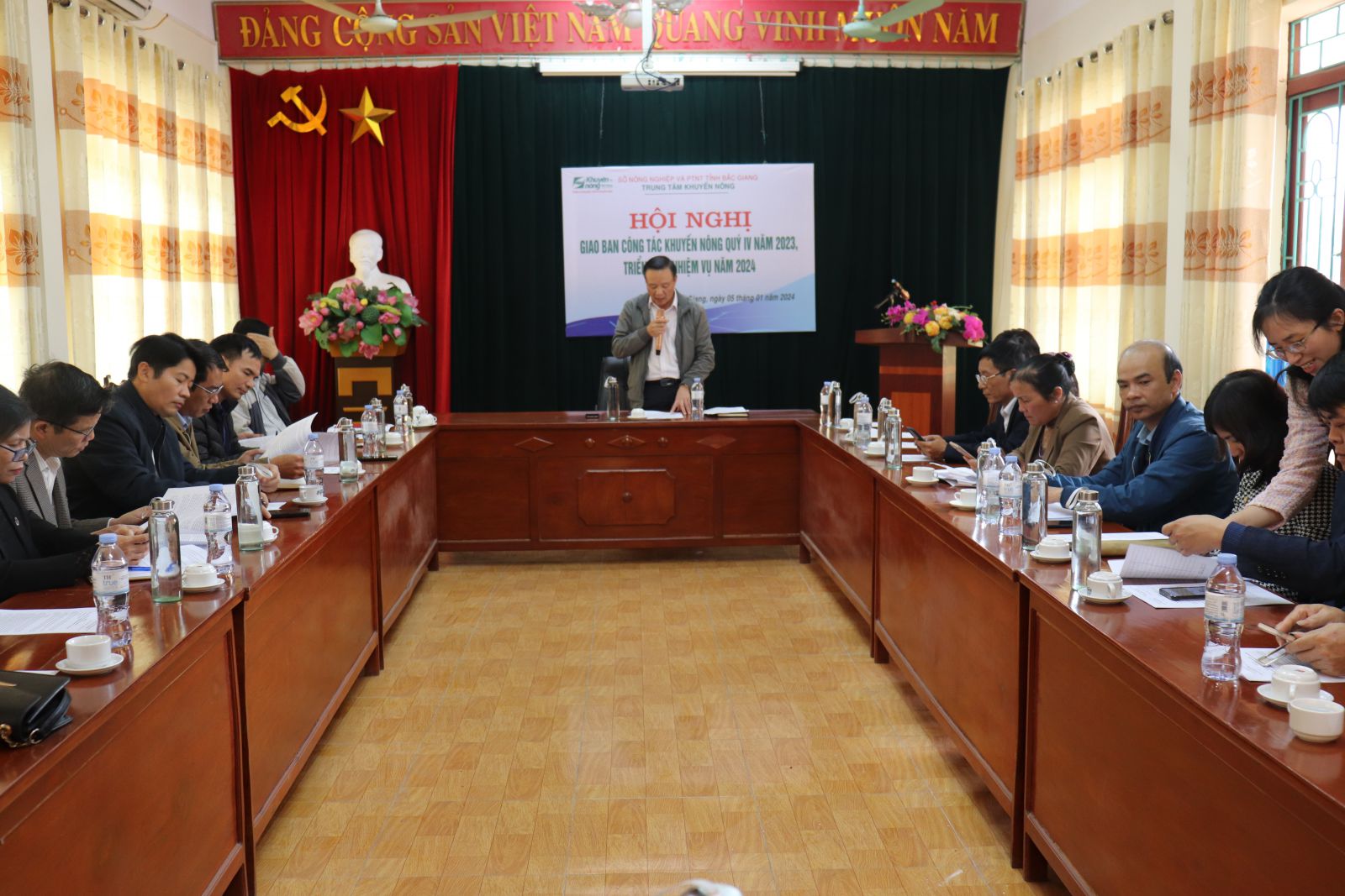 Mới đây, tại thành phố Bắc Giang, Trung tâm Khuyến nông tổ chức Giao ban công tác khuyến nông quý IV, phương hướng nhiệm năm 2024. Tham dự có lãnh đạo, trưởng, phó các phòng trực thuộc Trung tâm Khuyến nông tỉnh; lãnh đạo Trung tâm Dịch vụ Kỹ thuật Nông nghiệp 10 huyện, thành phố. Ông Đào Xuân Vinh- Giám đốc Trung tâm Khuyến nông chủ trì hội nghị.