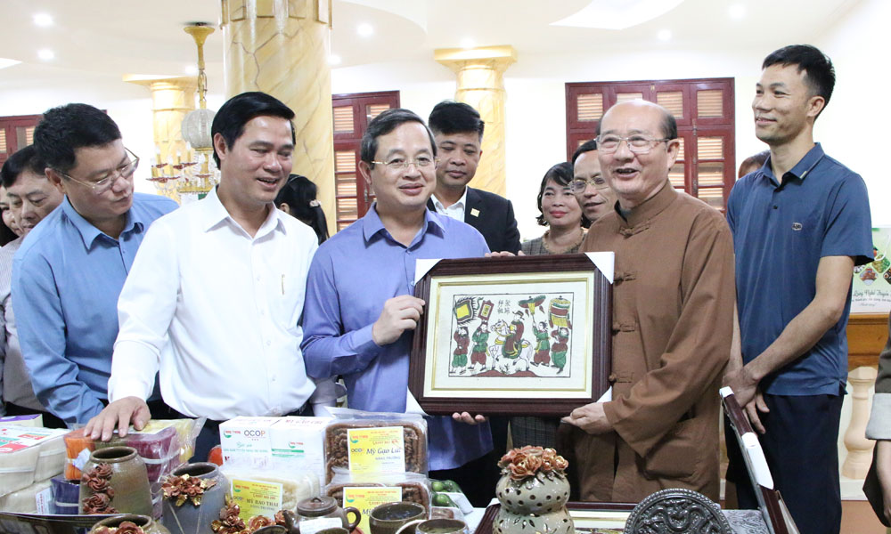 Các đồng chí lãnh đạo tỉnh đánh giá cao ý nghĩa, giá trị văn hóa truyền thống của tranh Đông Hồ. |