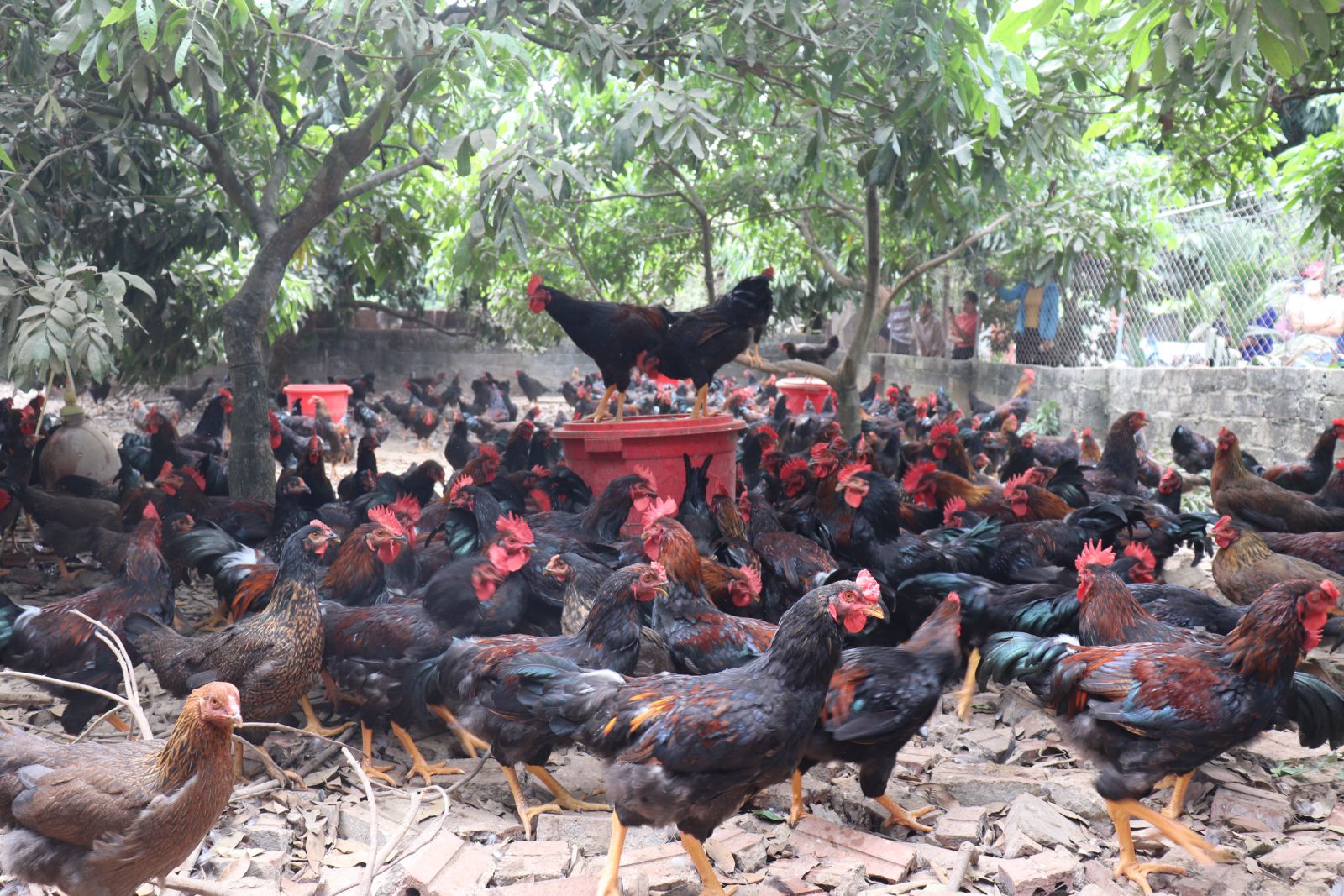 Trong khuôn khổ hội thảo, các đại biểu đi tham quan thực tế mô hình chăn nuôi gà chọi lai an toàn sinh học tại hộ anh Nguyễn Văn Tấn- thôn Hòa An, xã Hợp Đức, huyện Tân Yên.