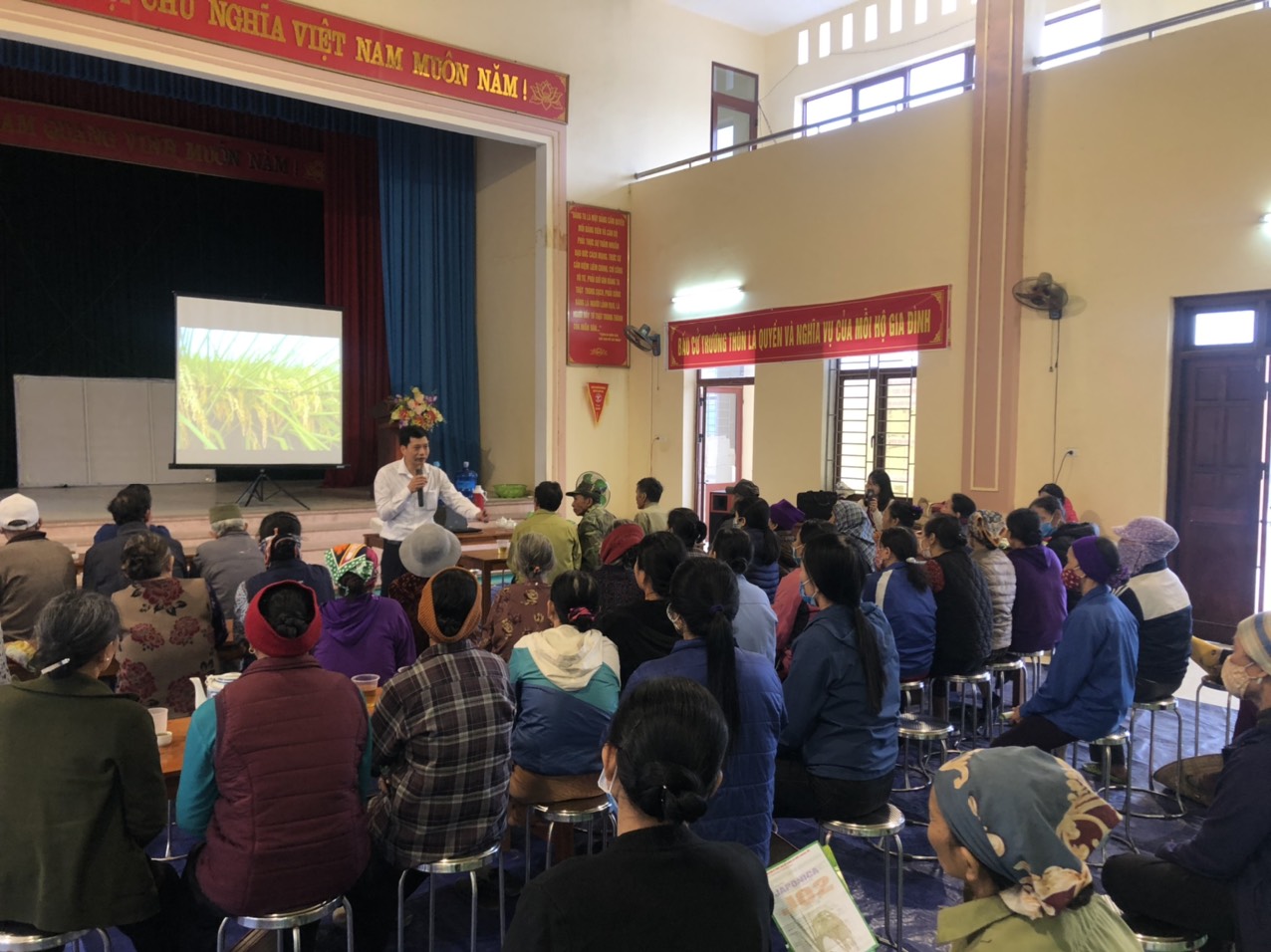 Các hộ tham dự buổi tuyên truyền được cán bộ Công ty Cổ phần Giống VTKT Nông nghiệp công nghệ cao Việt Nam và cán bộ Trung tâm Khuyến nông Bắc Giang giới thiệu kết quả một số mô hình sản xuất lúa do Trung tâm Khuyến nông tỉnh phối hợp với Trung tâm Dịch vụ KTNN các huyện triển khai trong những năm vừa qua tại các địa phương trên địa bàn tỉnh. Trong đó nổi bật là mô hình liên kết sản xuất lúa J02 theo hướng hữu cơ tại xã Mỹ Thái và thị trấn Kép năm 2022. Mô hình đã đạt kết quả cao, năng suất trung bình đạt 67 tạ/ha, các hộ được doanh nghiệp bao tiêu cơ bản hết lượng thóc có nhu cầu bán với giá thóc tươi 6.000-7.000 đ/kg, thóc khô 10.000 - 11.000 đ/kg.