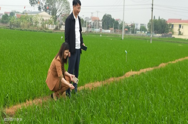Tham gia mô hình các hộ dân ở thôn Nguộn và thôn Râm được hỗ trợ 70% giống, phân bón, thuốc bảo vệ thực vật. Hiện, diện tích lúa trong mô hình đang trong giai đoạn đẻ nhánh, sinh trưởng phát triển tốt, được cán bộ kỹ thuật thường xuyên hướng dẫn cách chăm sóc và nhận biết, phòng trừ các đối tượng sâu, bệnh hại.