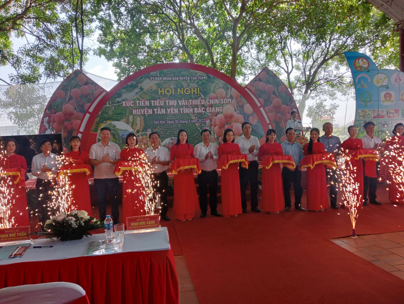 Tại hội nghị, đại diện doanh nghiệp, hợp tác xã ký biên bản ghi nhớ tiêu thụ vải thiều; các đại biểu cắt băng xuất hành chuyến xe đưa vải thiều chín sớm tiêu thụ tại thị trường trong nước và quốc tế. Kết thúc hội nghị, các đại biểu đi tham quan vùng sản xuất vải sớm tại xã Phúc Hoà.