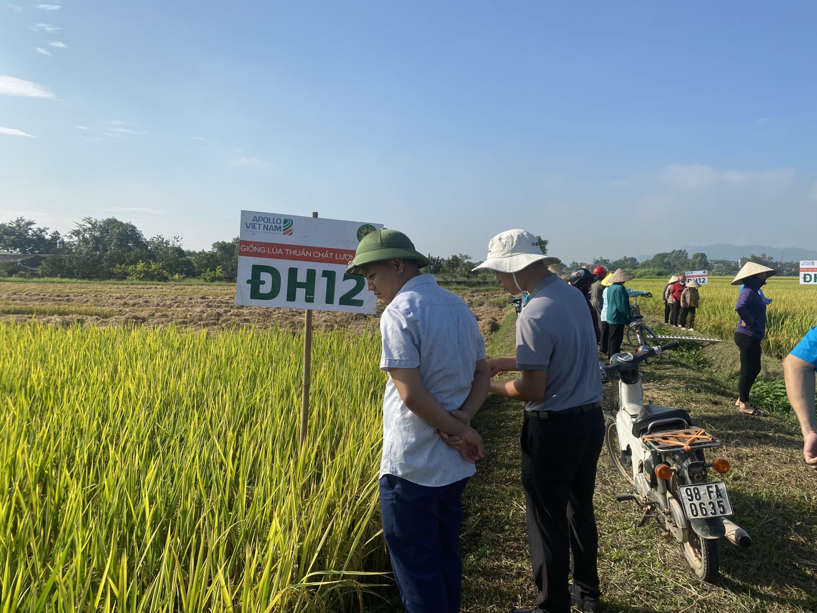 Trung tâm Dịch vụ Kỹ thuật nông nghiệp huyện Tân Yên vừa phối hợp với Công ty Cổ phần Đầu tư và Phát triển Apollo Việt Nam tổ chức hội thảo đầu bờ mô hình trình diễn giống lúa thuần chất lượng ĐH12 vụ mùa năm 2023.