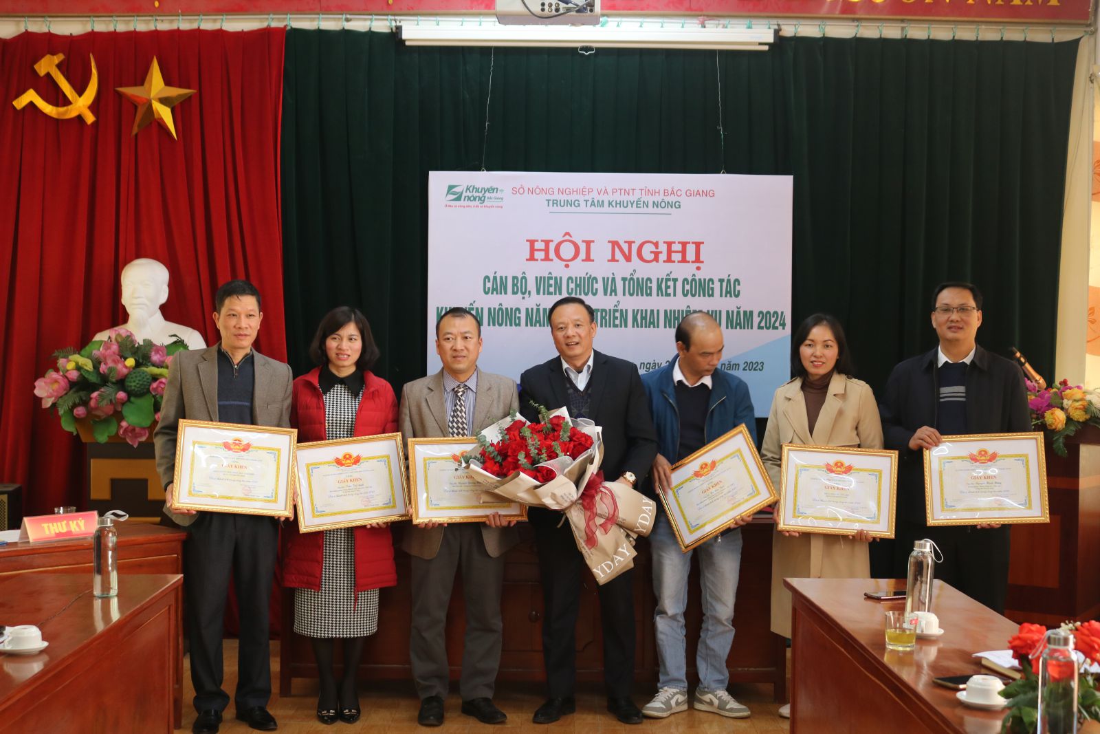 Nhân dịp này, hội nghị công bố các quyết định khen thưởng và biểu dương các cá nhân và tập thể của Trung tâm Khuyến nông có thành tích trên các lĩnh vực trong năm 2023.