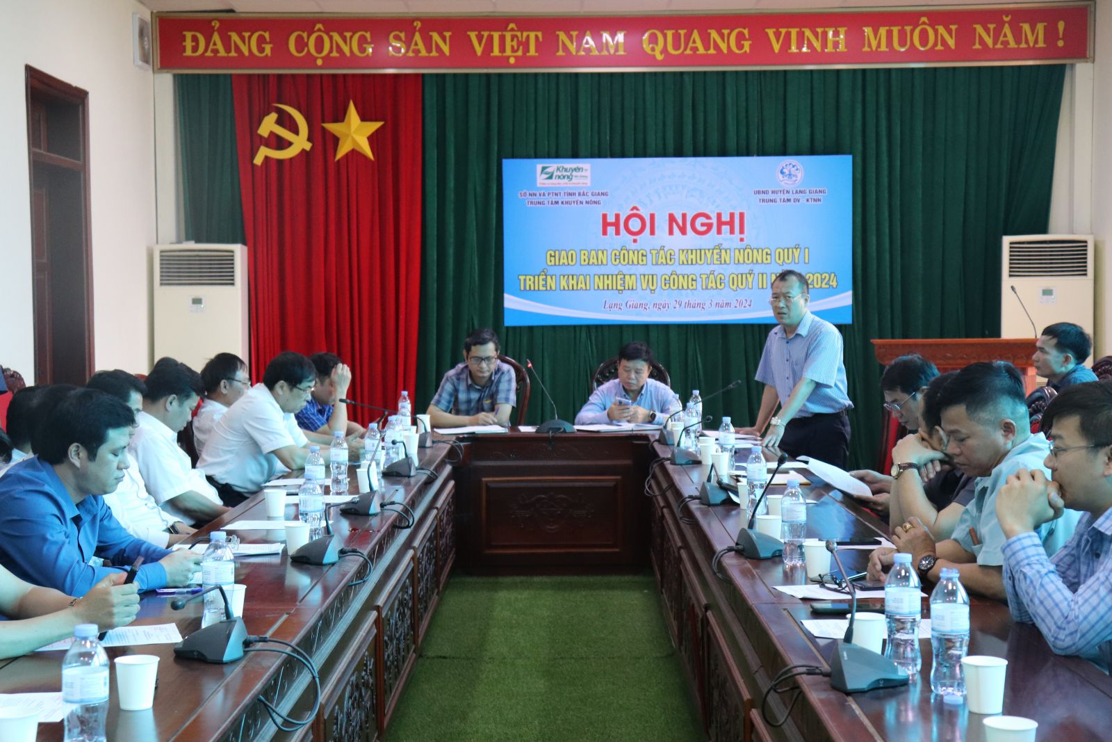 Tham dự có lãnh đạo, trưởng, phó các phòng trực thuộc Trung tâm Khuyến nông tỉnh; lãnh đạo Trung tâm Dịch vụ Kỹ thuật Nông nghiệp (DV KTNN) 10 huyện, thị xã và thành phố Bắc Giang. Ông Lê Hồng Giang- Phó Giám đốc Trung tâm Khuyến nông chủ trì hội nghị.