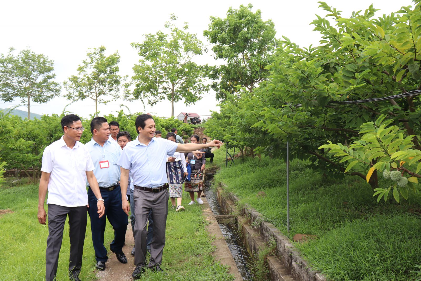 Tại xã Nghĩa Phương, đoàn công tác đã tham quan, học tập kinh nghiệm 3 mô hình nông nghiệp tiêu biểu gồm: Liên kết sản xuất na dai theo hướng hữu cơ tại gia đình ông Đặng Văn Thành, thôn Kỳ Sơn; sản xuất chăn nuôi con đặc sản (cầy vằn, dúi) của gia đình anh Phạm Văn Hùng, thôn Nghĩa An và nuôi dê bán chăn thả của gia đình anh Vi Văn Sy ở Khu Du lịch sinh thái Suối Mỡ.